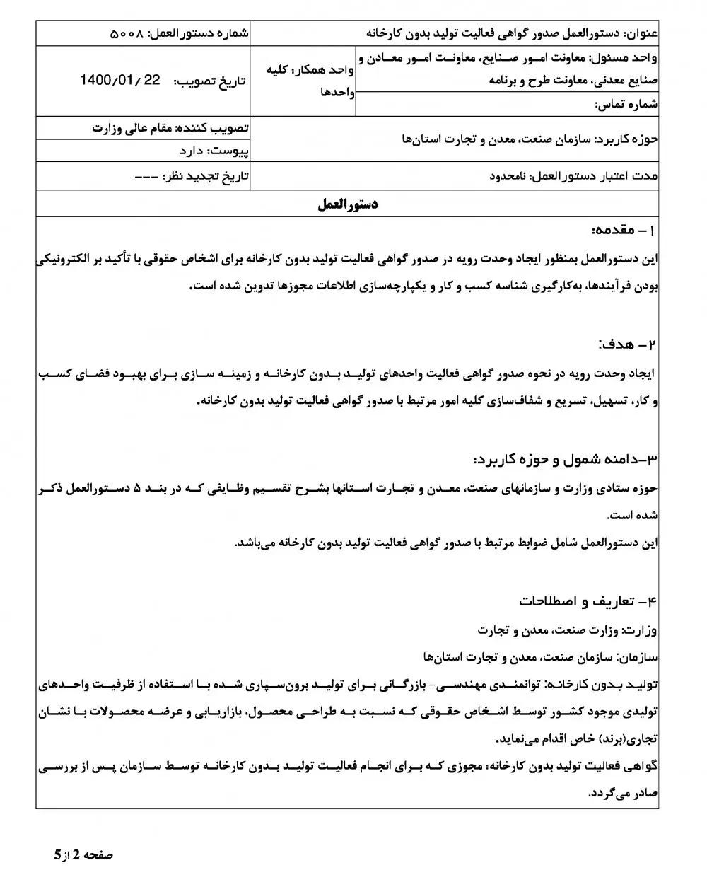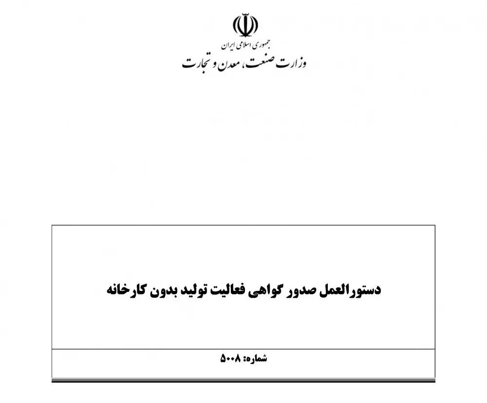 وزارت صنعت، معدن و تجارت برای حل این معضل، با همفکری و هماندیشی با صاحبنظران، انجمنها و تشکلهای خصوصی طرح فعالیت تولیدی بدون کارخانه را ارائه داده است.