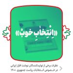گالری - 27 خرداد 1400 نظرات برخی از تولیدکنندگان نوشت افزار ایرانی در خصوص انتخابات ریاست جمهوری ۱۴۰۰ 6 ادمین @admin
